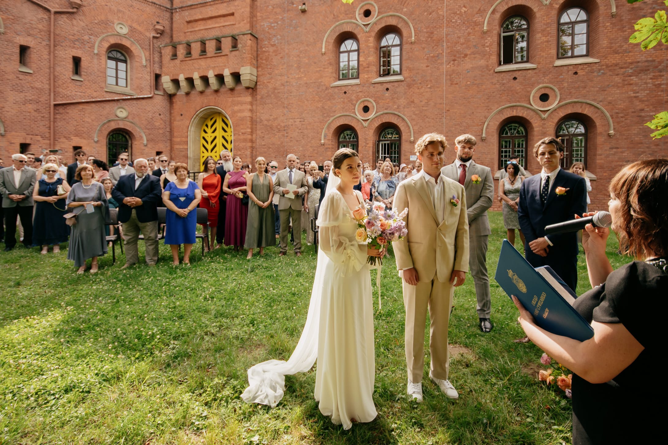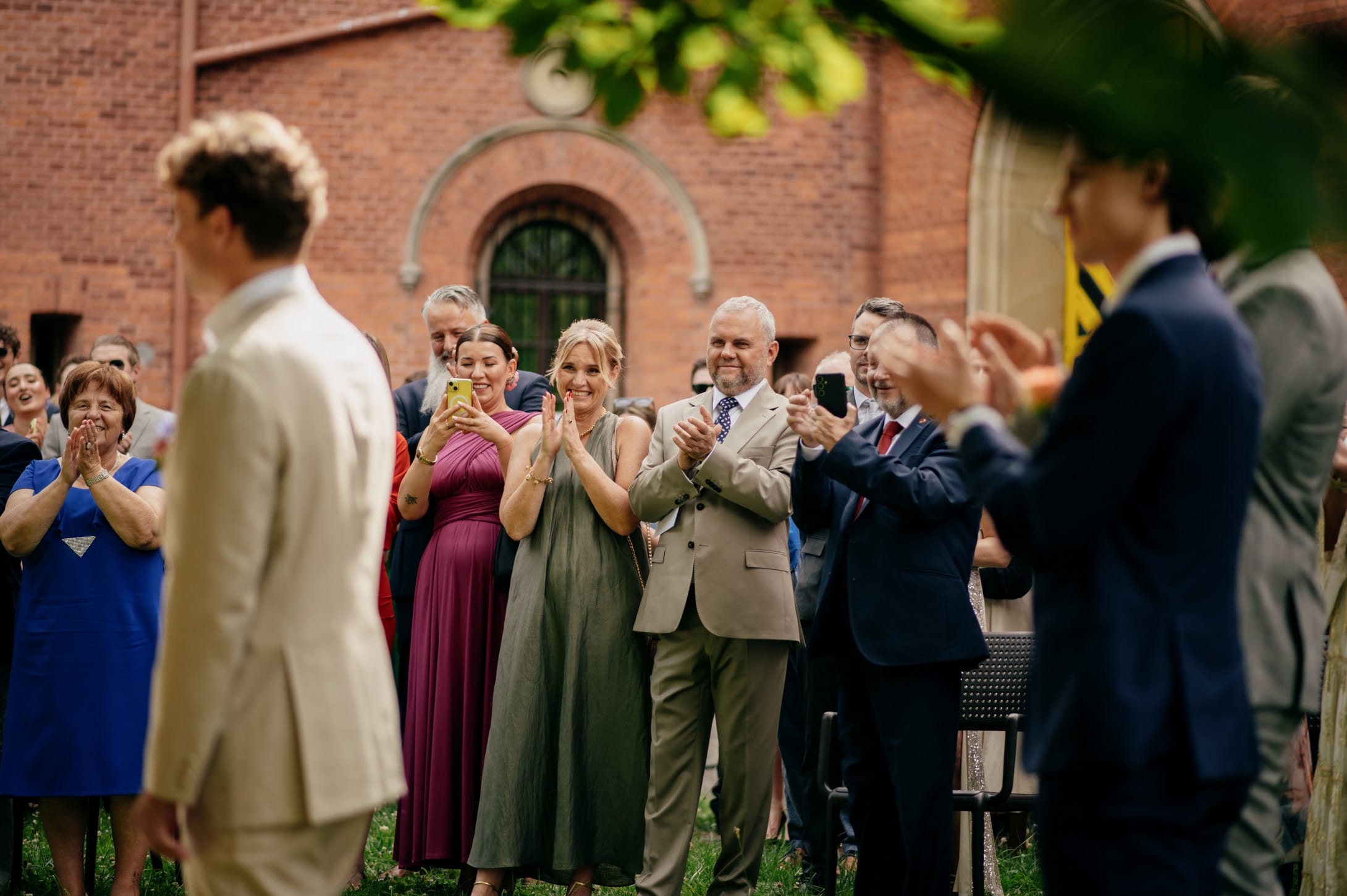 Miejsce jest zjawiskowe, zabytkowe mury otoczone piękną zielenią, sala oświetlona dziennym światłem wpadającym przez przeszklony dach, cudnie udekorowana kwiatami i lampkami stwarzała wrażenie, że znajdujemy się cały czas w pięknym ogrodzie.